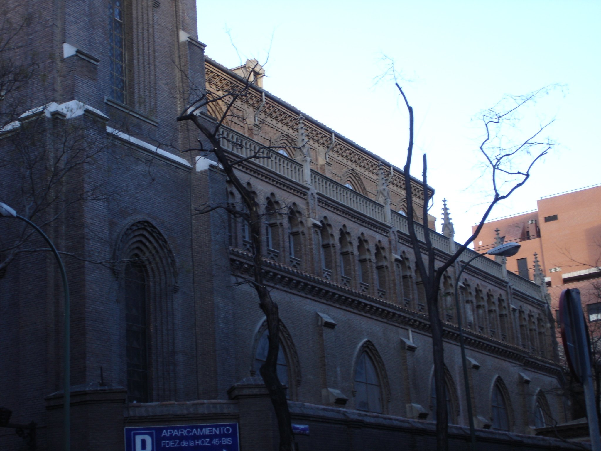 Es uno de los claros ejemplos de la arquitectura ecléctica que caracterizó a las iglesias madrileñas de su época. El interior es neogótico de gran simplicidad decorativa, mientras que el exterior muestra un rico repertorio en decoraciones en ladrillo con caracteres neomudéjares que se mezclan con elementos góticos. Su planta está constituida por tres naves: la central, más ancha y alta, se separa de las laterales por doce pilares cruciformes que, según el autor, simbolizan a los doce apóstoles. No existe crucero y en la cabecera se dispuso una girola con clara inspiración en la de la catedral de Toledo, alternando las bóvedas cuadradas con las triangulares. La fachada queda flanqueada por dos torres en las que se advierte cierta influencia del gótico europeo. El tímpano de la entrada es obra de Daniel Zuloaga y las vidrieras de Guillermo Alonso Bolinaga y Salvador Castro. Ha sufrido varias transformaciones interiores dentro de las líneas neogóticas iniciales, siendo la más importante en 1965 cuando se convierte en parroquia.