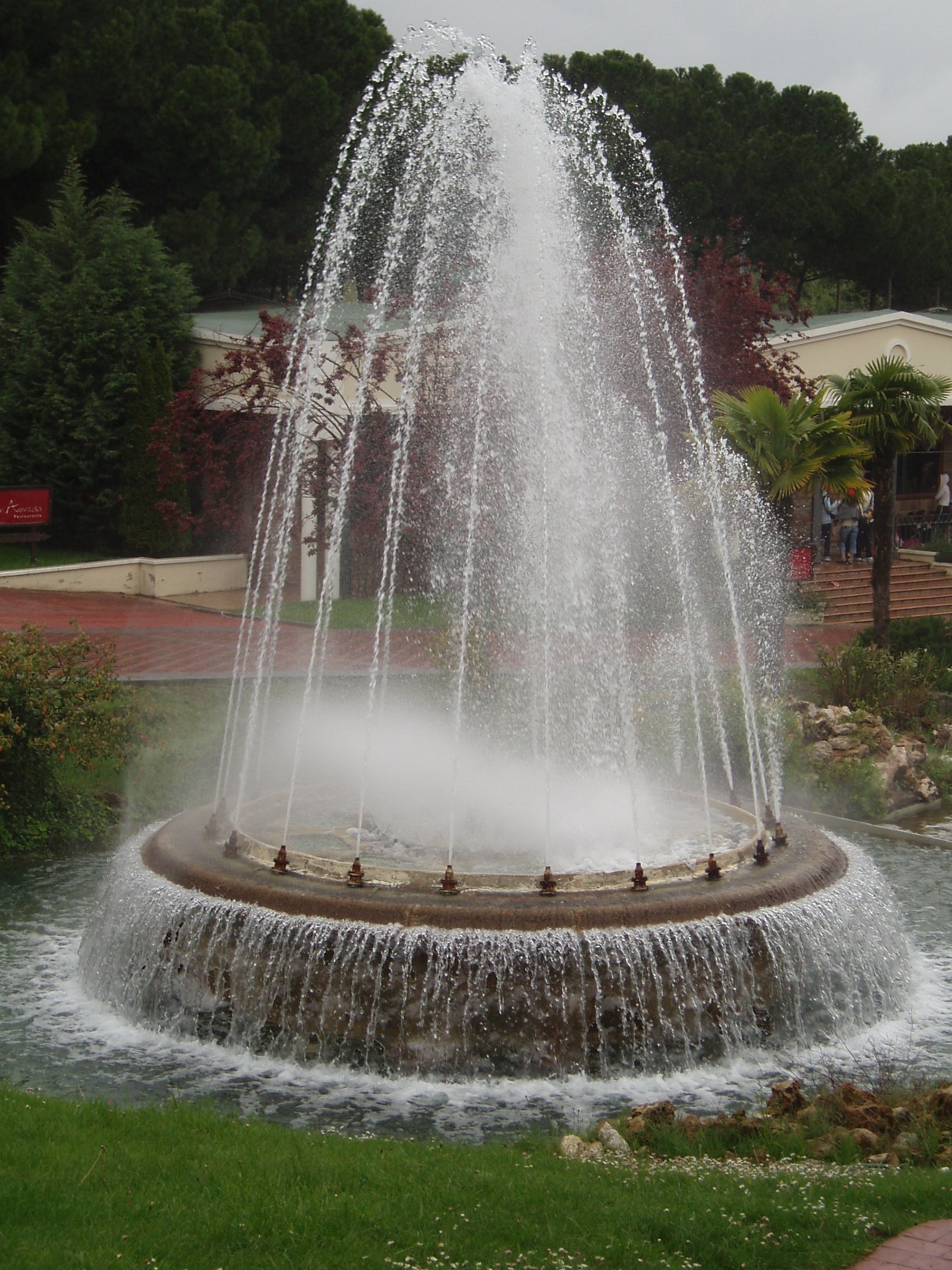 | Surtidores | Un aro focal con 10 surtidores metálicos ligeramente oblicuos hacia el exterior se rodea en primer término de un segundo anillo concéntrico con 24 surtidores verticales en sifón de menor alcance y, en el perímetro exterior del vaso, de un tercer aro anular con 20 surtidores metálicos también oblicuos, pero de dirección cruzada con los primeros. |