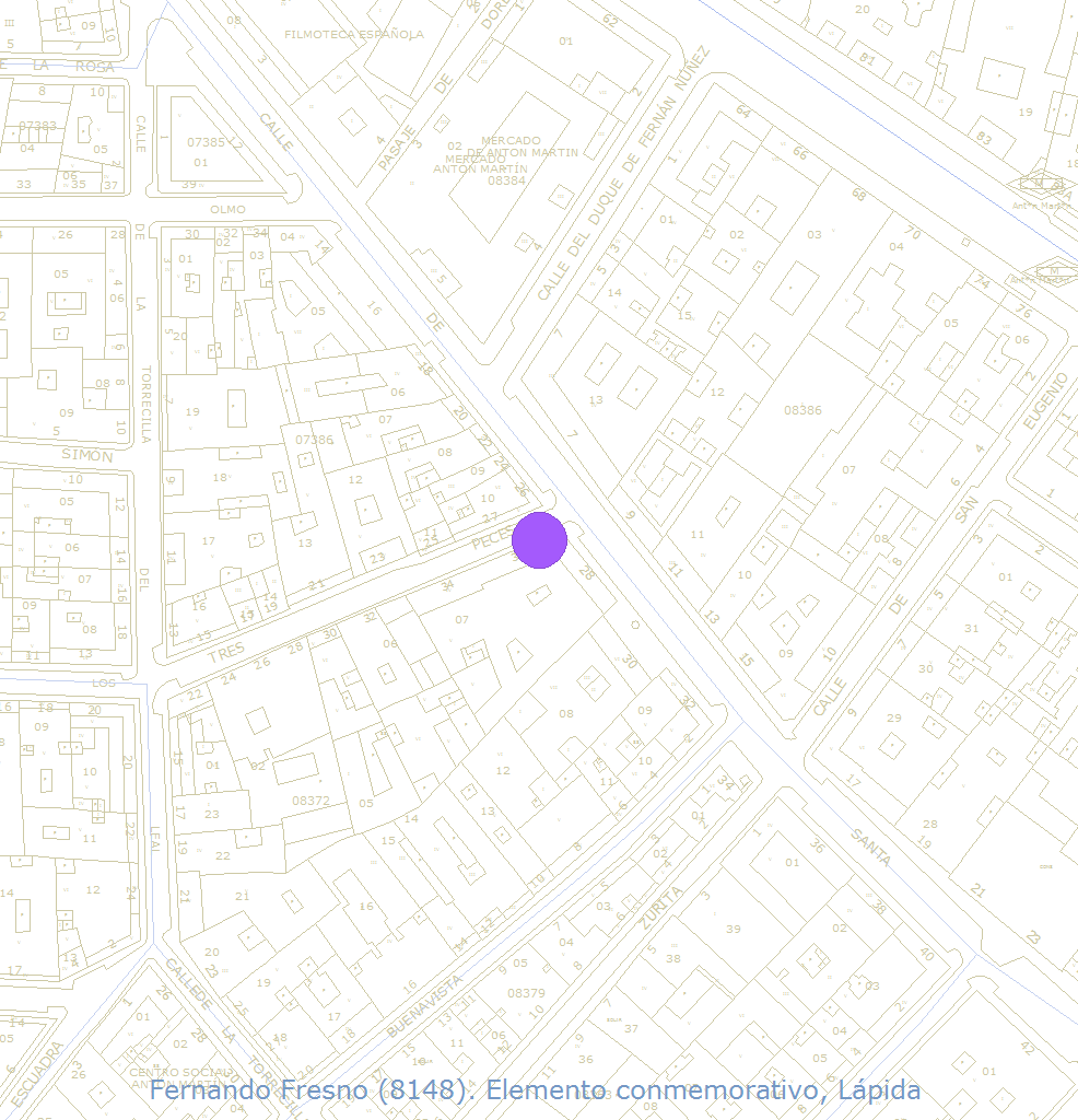 | Motivo principal | Lápida dedicada a Fernando Fresno, con la efigie en bronce y la inscripción incrustada con letras en bronce: A FERNANDO FRESNO / QUE VIVIO AQUI / SU OBRA DE DIBUJANTE / LE GRANJEO RENOMBRE PARA / SIEMPRE / LA ASOCIACION DE LA PRENSA / DE MADRID RECUERDA / AL COMPAÑERO A QUIEN / TANTO QUISO / MCMLI. Realizada en caliza blanca de las siguientes dimensiones: 1,25 x 0,95 m. |