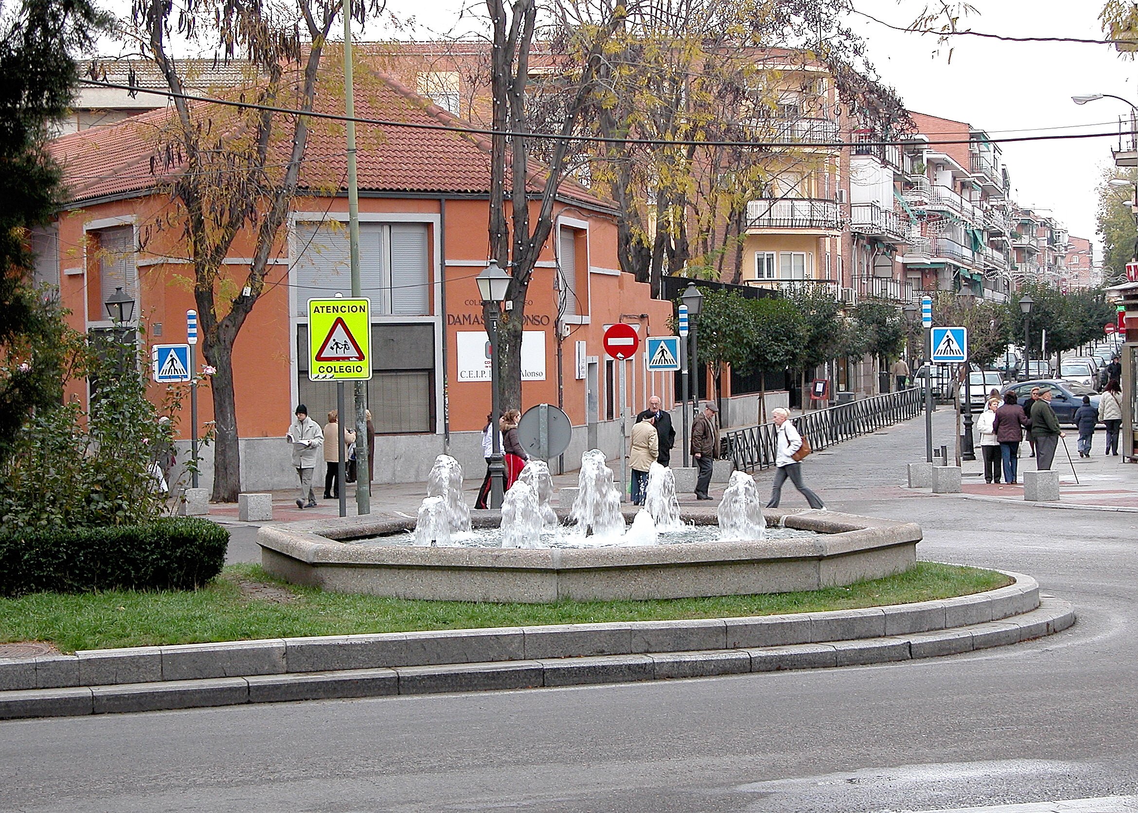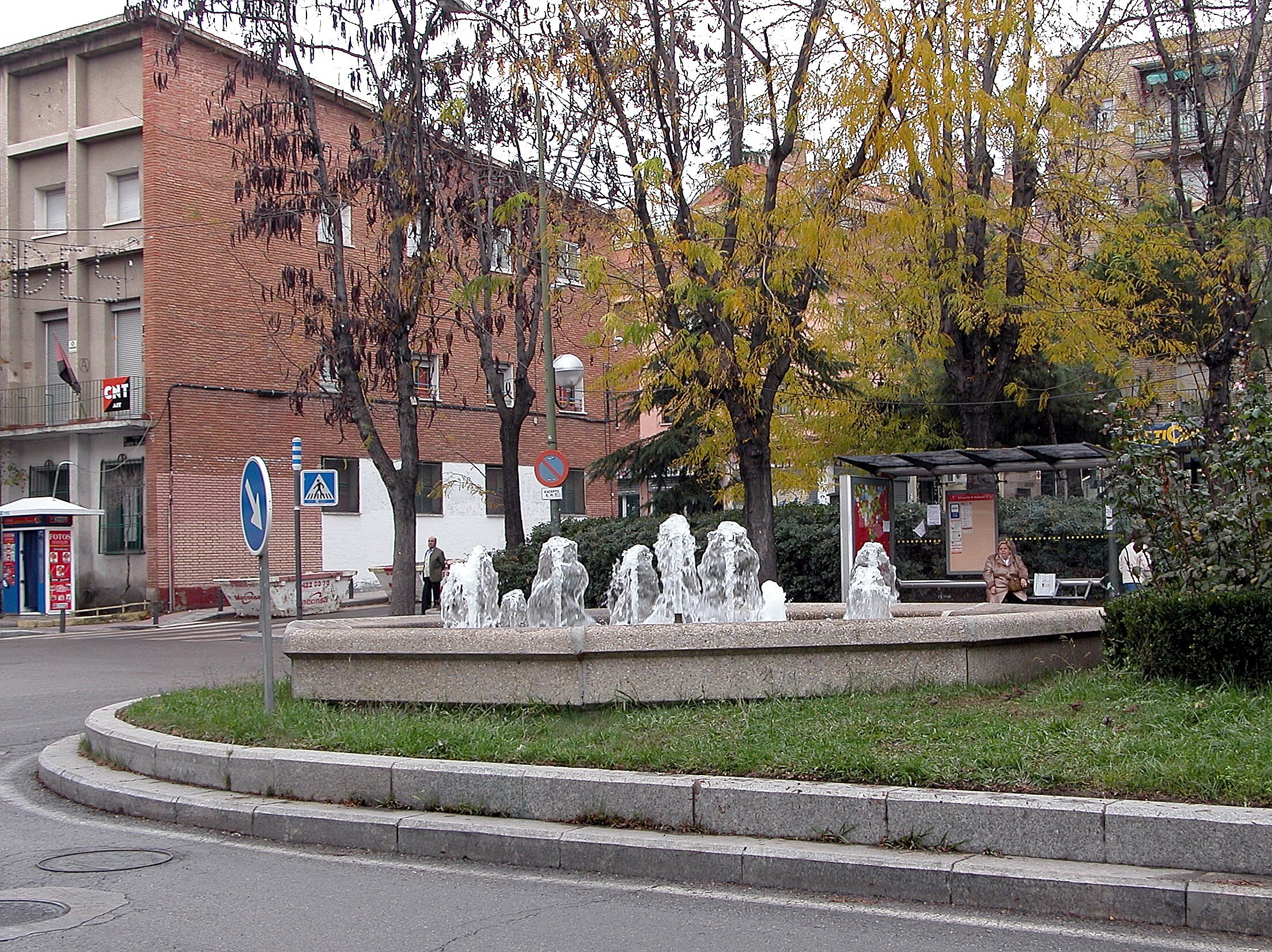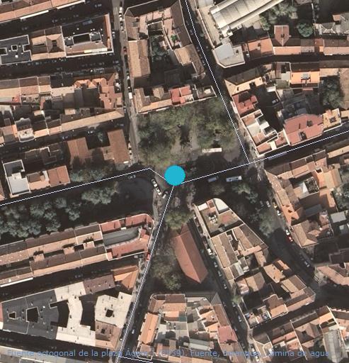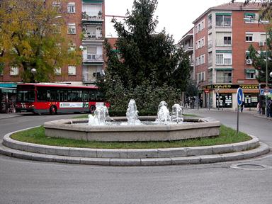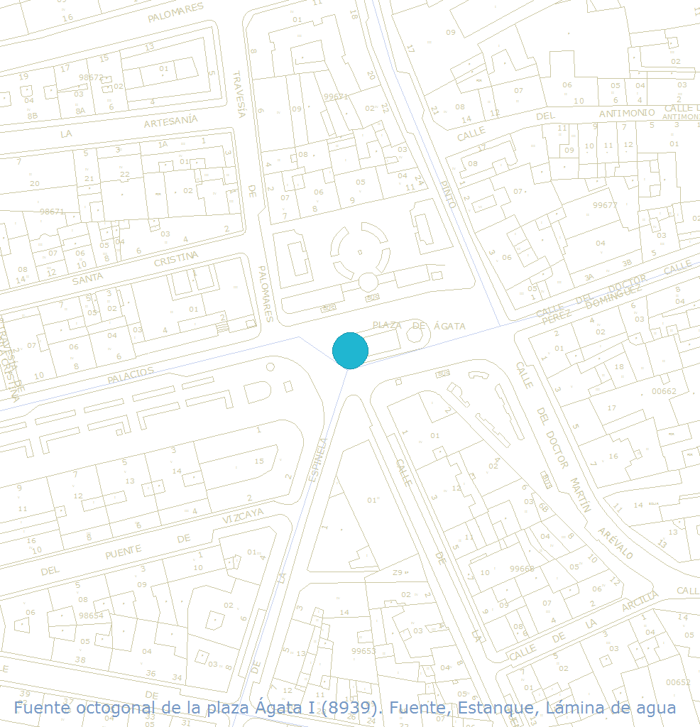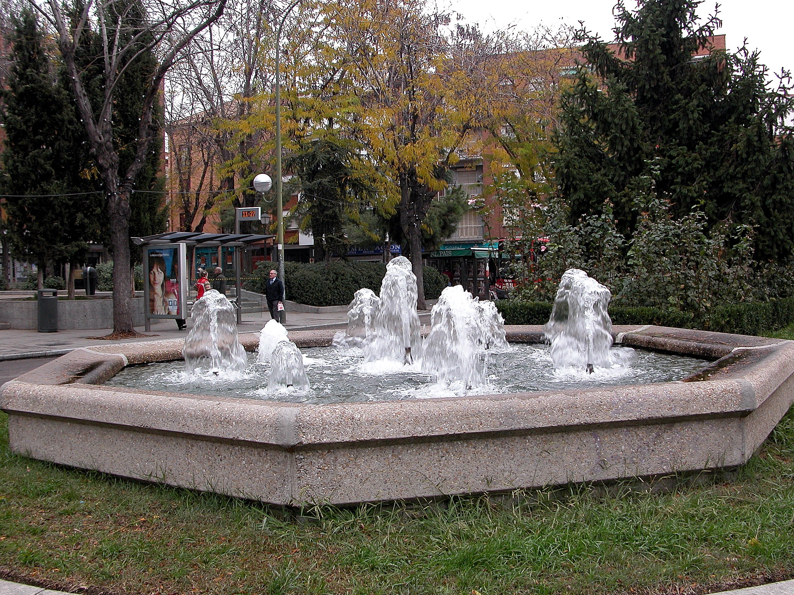 Sencilla lámina agua con un vaso de forma poligonal realizado en piedra artificial y nueve surtidores. Se encuentra ubicada en el centro de la plaza de Ágata en uno de los extremos de la isleta central y rodeada de césped.