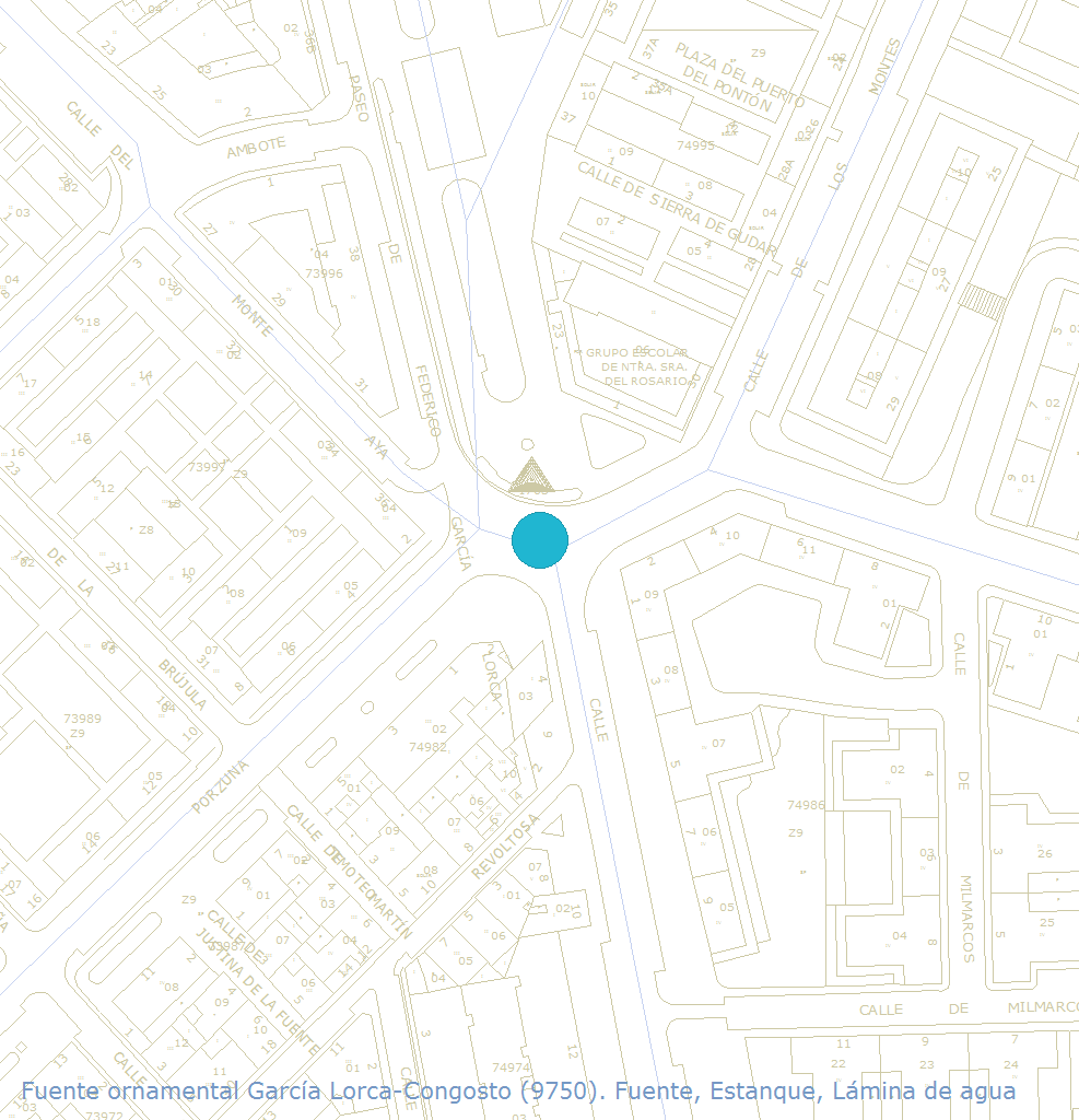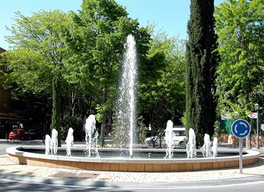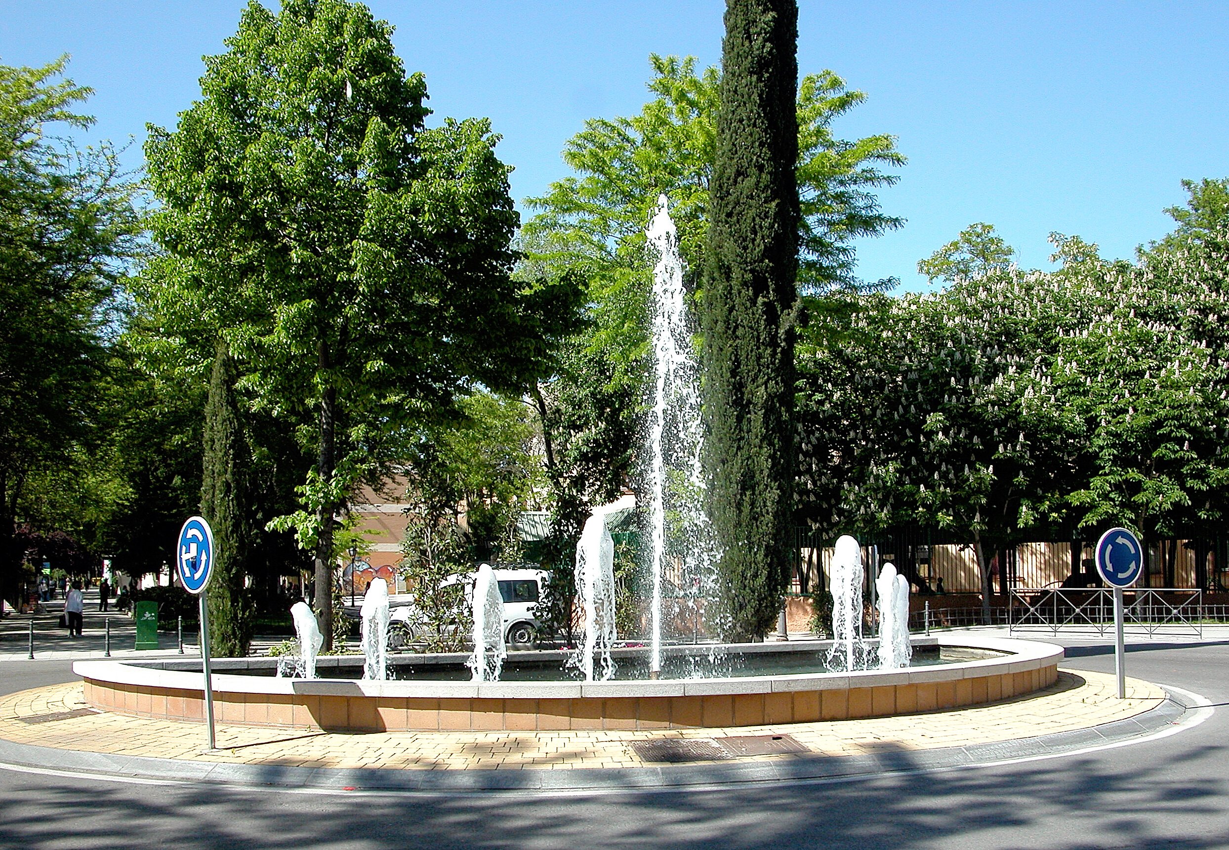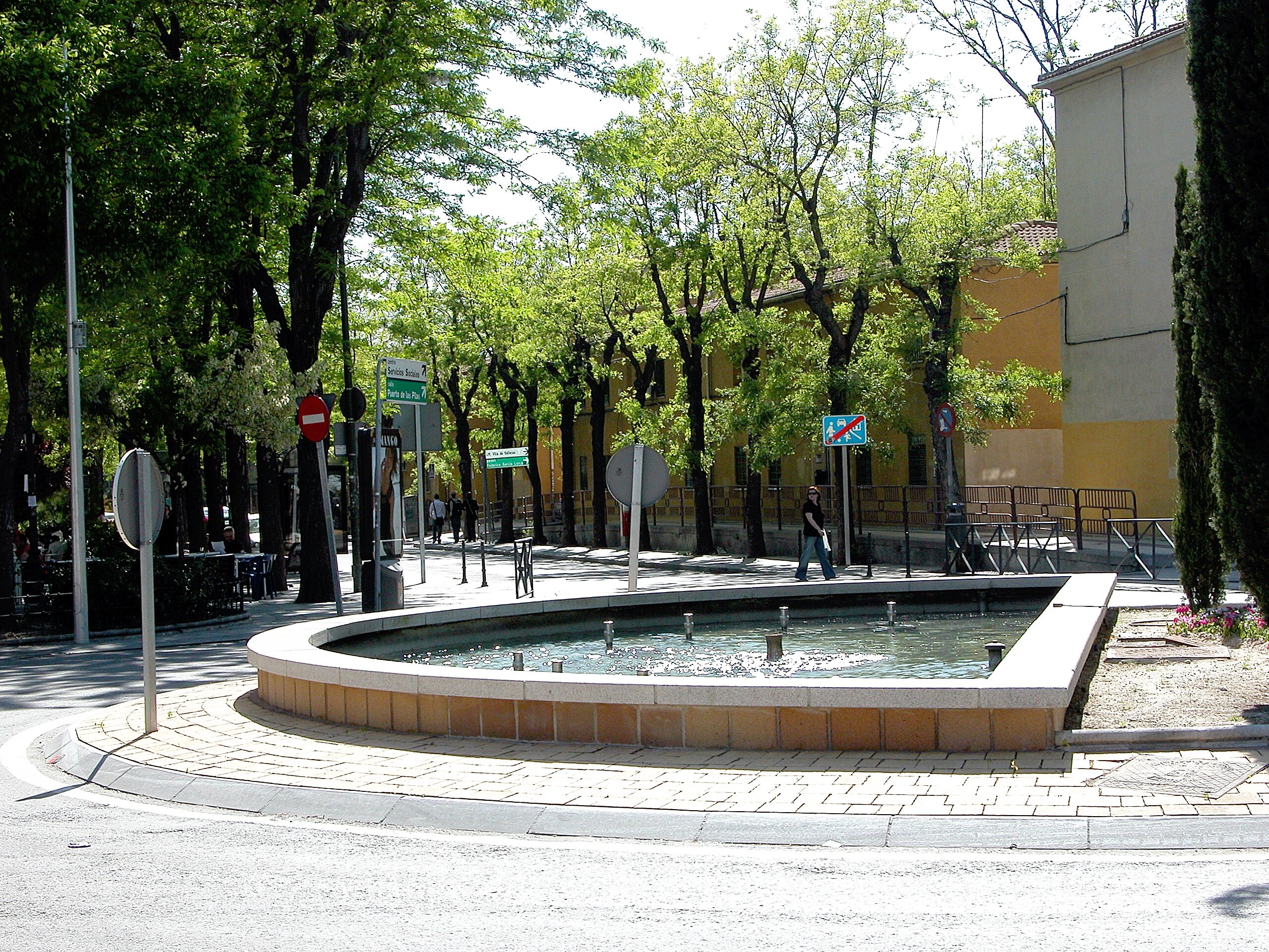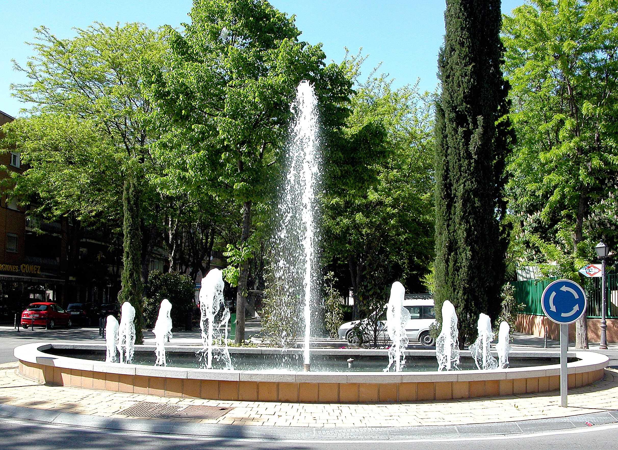 | Componentes artísticos | La fuente se encuentra situada en una isleta circular, de 14,00 m de diámetro, delimitada por un solado perimetral de adoquín y un bordillo de cemento. La otra mitad está ocupada por un ajardinamiento de césped y árboles. |
