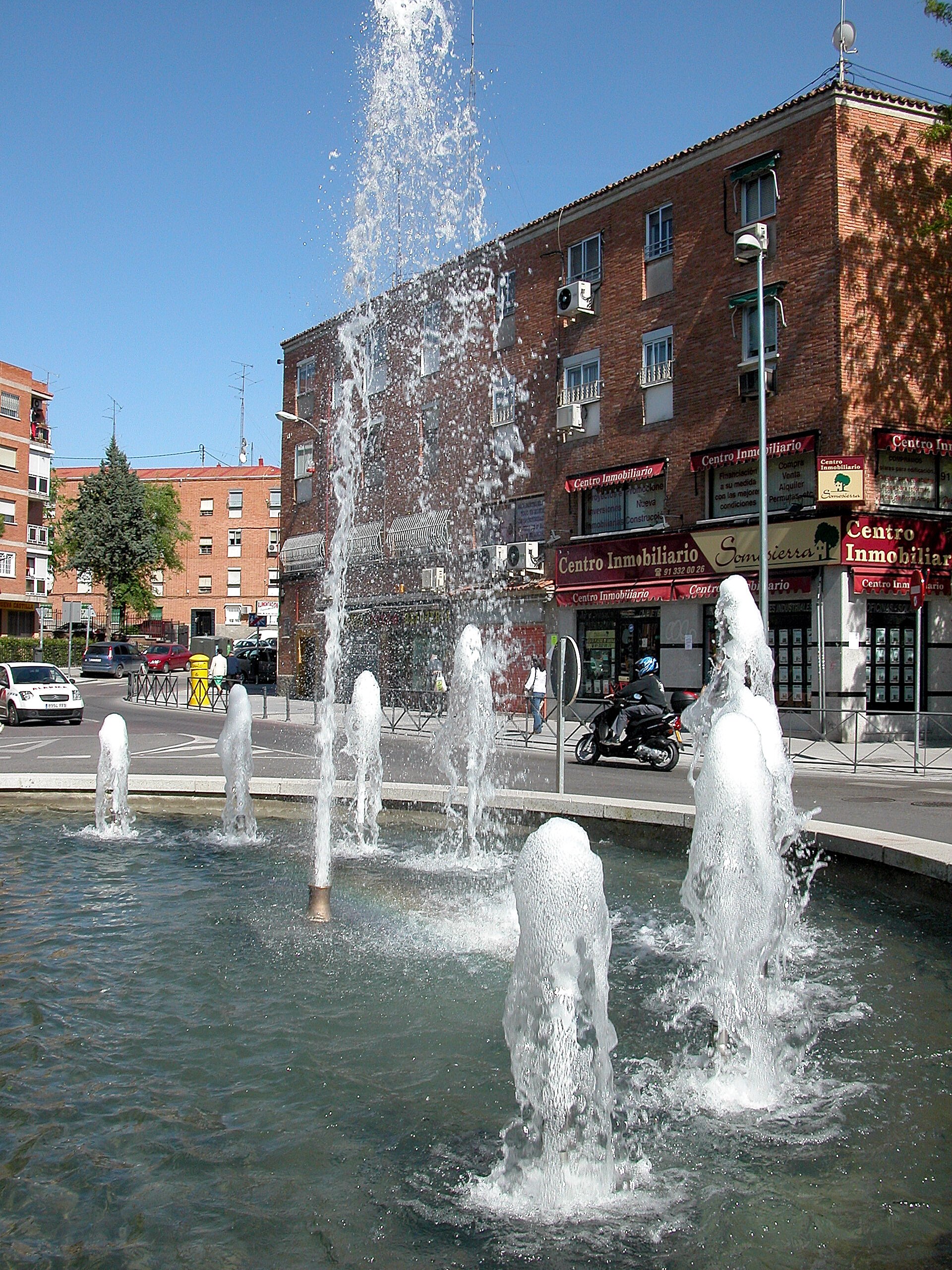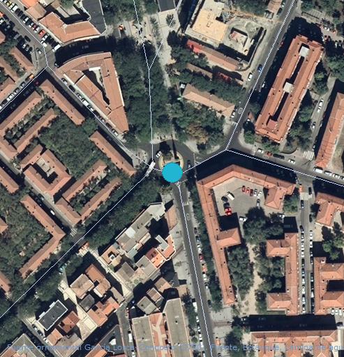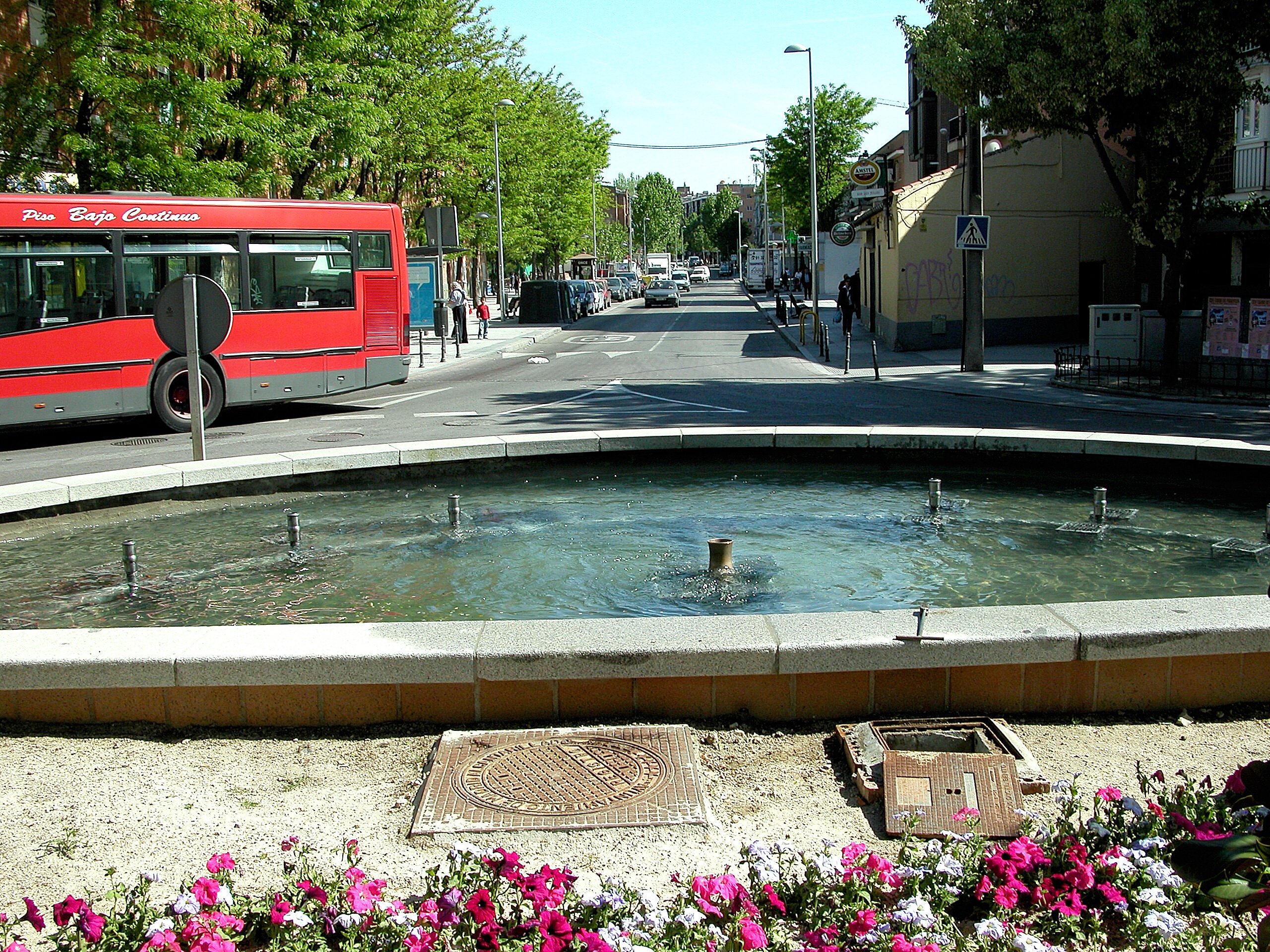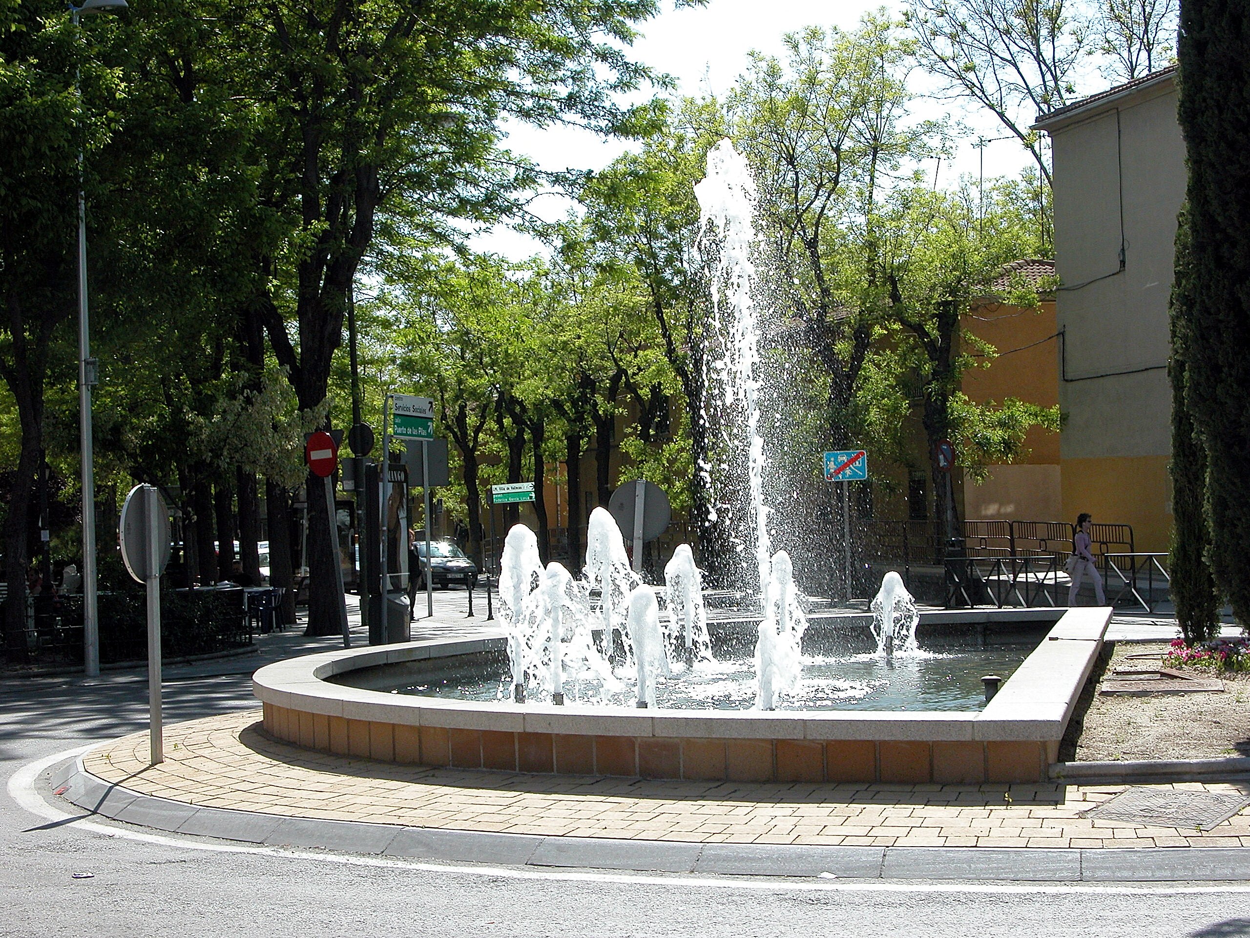 | Componentes artísticos | La fuente se encuentra situada en una isleta circular, de 14,00 m de diámetro, delimitada por un solado perimetral de adoquín y un bordillo de cemento. La otra mitad está ocupada por un ajardinamiento de césped y árboles. |