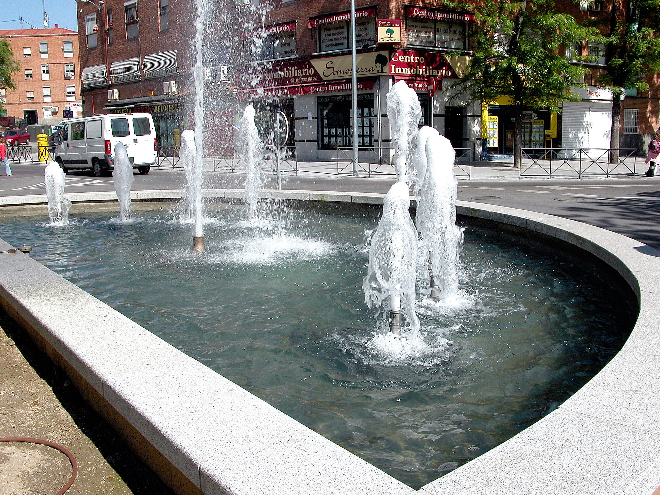 | Surtidores | Un surtidor central, de chorro vertical, acompañado por ocho surtidores, de chorros verticales escalonados, dispuestos de forma semicircular en dos grupos de cuatro a cada lado del eje transversal del vaso; todos ellos con impulsión desde el vaso y con focos de iluminación sumergidos y protegidos con rejilla metálica (cuatro focos en el surtidor central y dos en cada uno de los secundarios). |