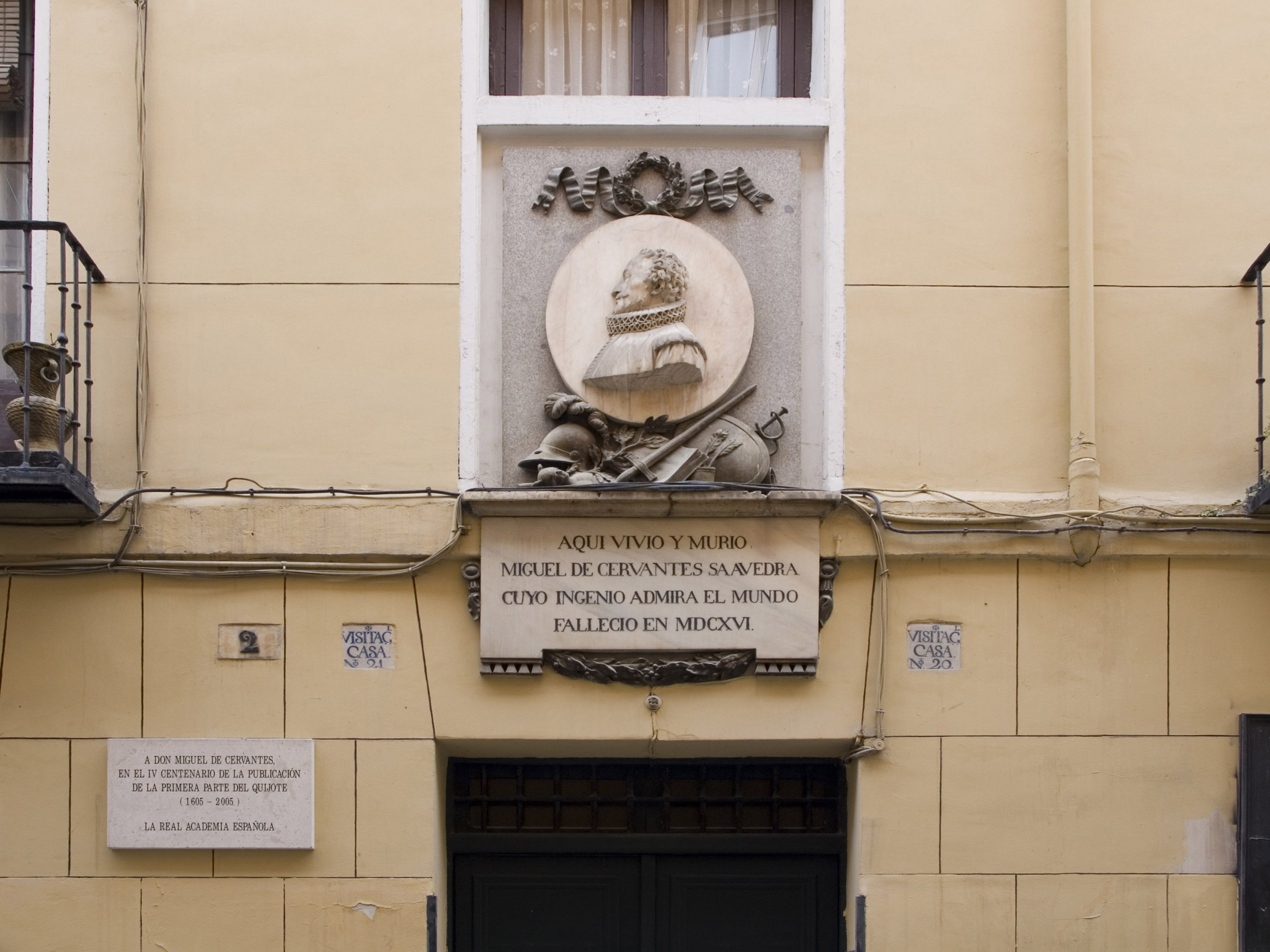 La Real Academia de Bellas Artes de San Fernando, coincidiendo con el aniversario del IV centenario de la publicación de la primera parte de la insigne novela, instaló en la casa donde vivió el escritor una sencilla lápida en su recuerdo.