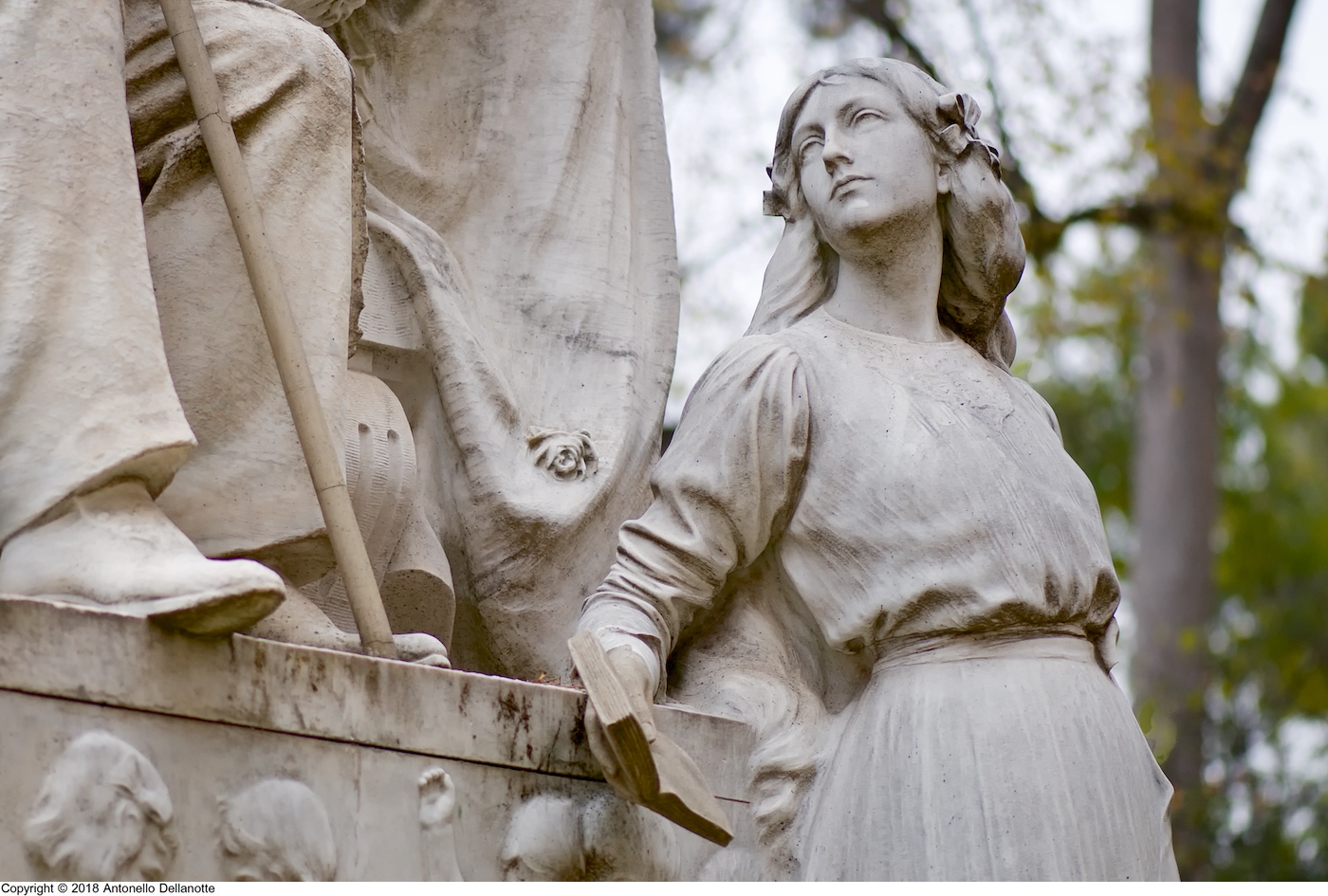 | Figuras independientes | Dos escenas muy expresivas complementan a la estatua principal, sus célebres Doloras: a su derecha un sacerdote sentado recibe a una aldeana y escribe unas notas en un libro (Quien supiera escribir). En la escena de la izquierda hay un gaitero sentado sobre una roca (El gaitero de Gijón). Ambas estatuas son de bronce y están sobre un pedestal prismático de piedra caliza, con base granítica. Tienen como medidas aproximadas 1,70 x 0,50 x 0,50 m., incluido el pedestal. |