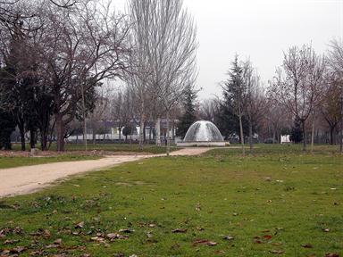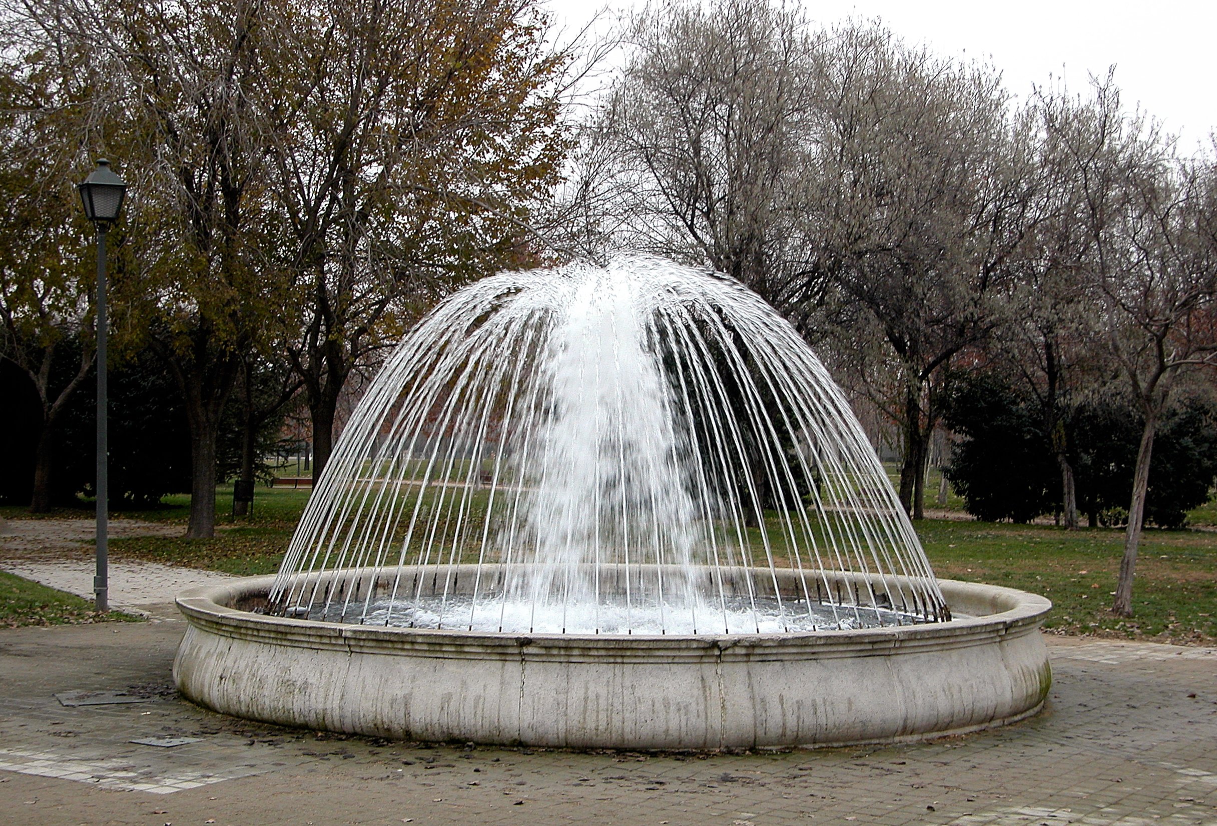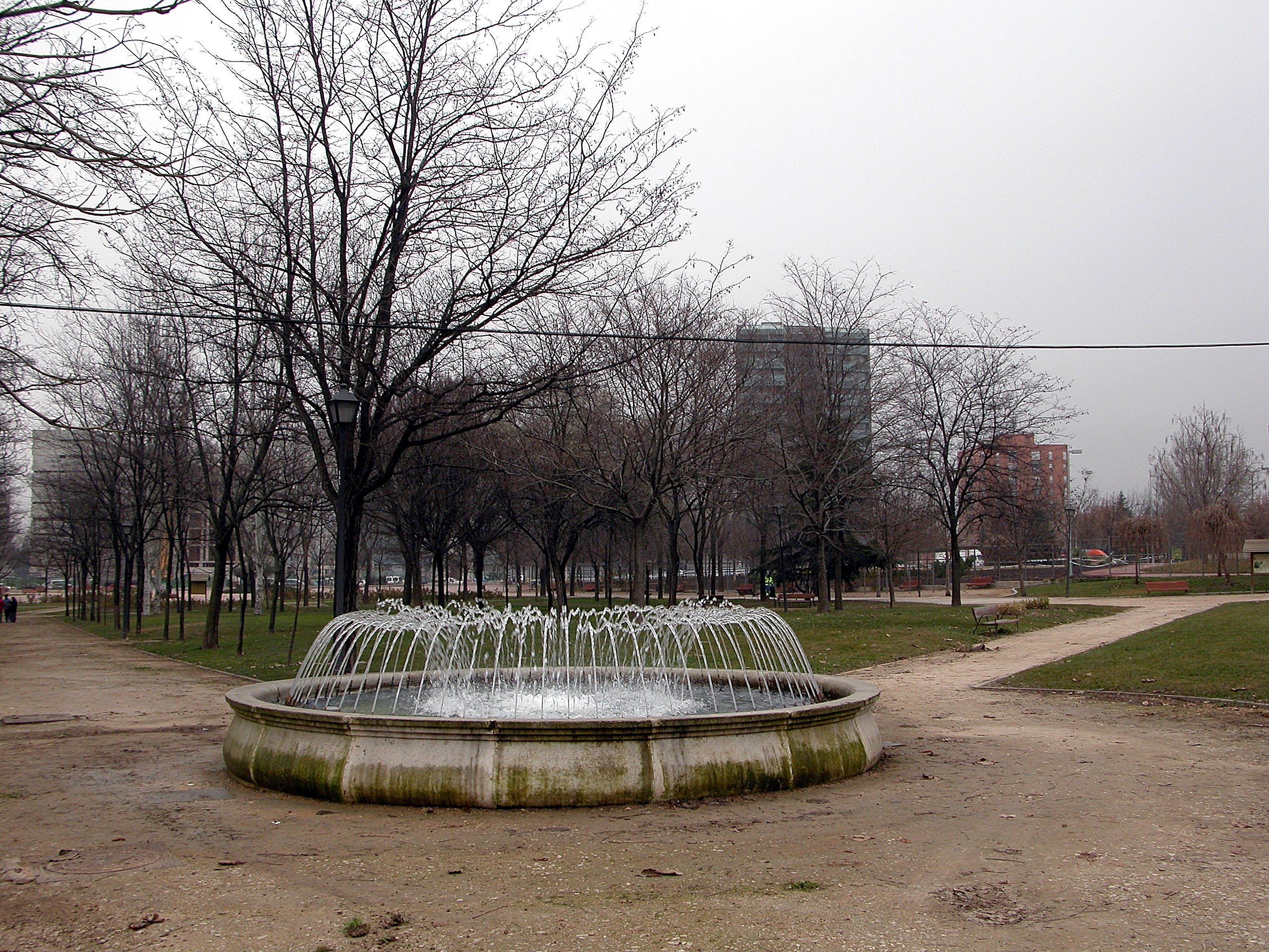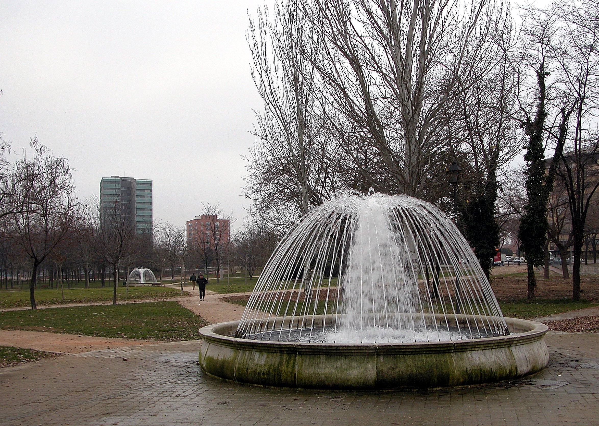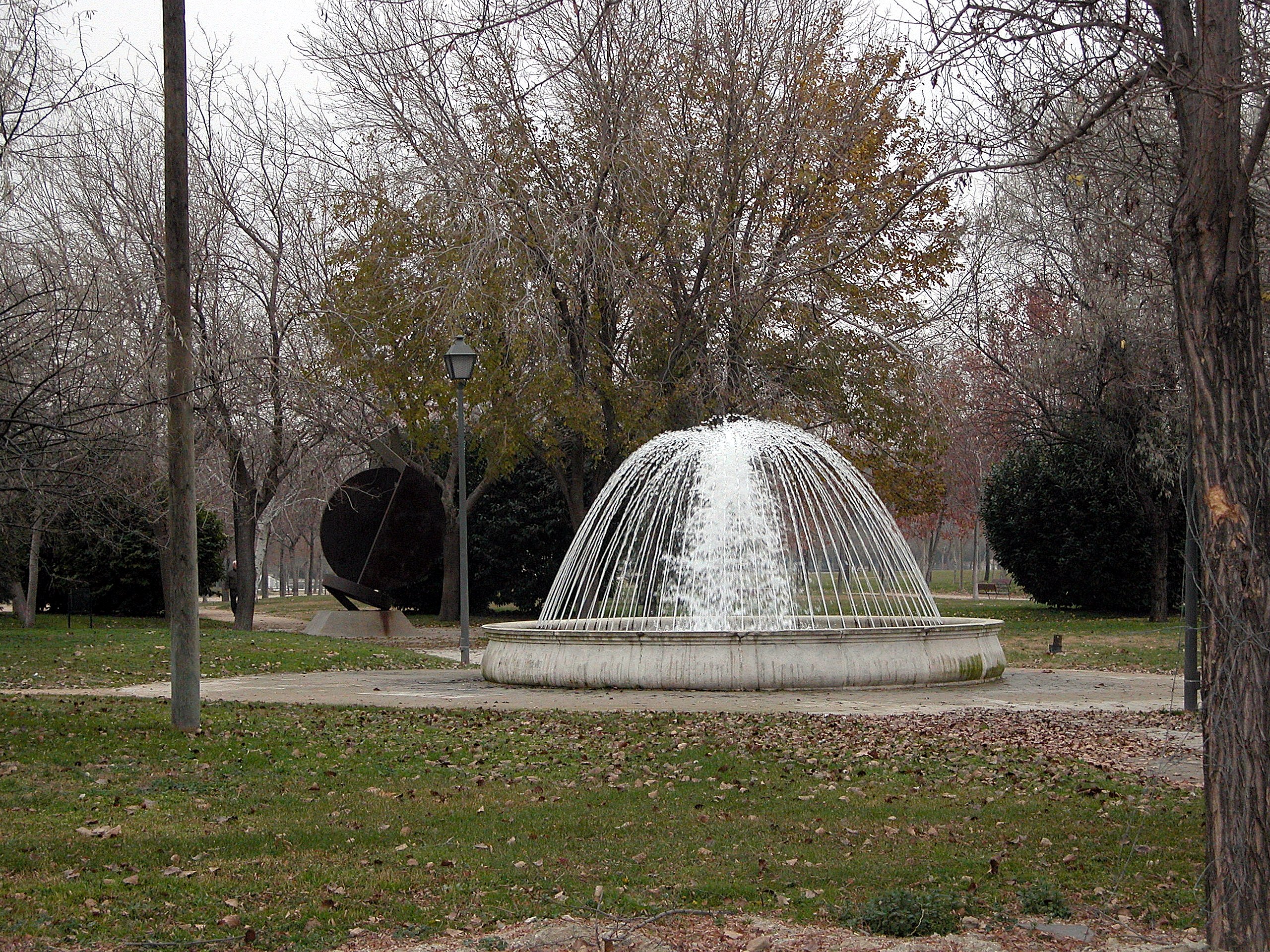 Elemento ornamental del parque de Pradolongo que hace pareja con otra fuente idéntica muy próxima.
