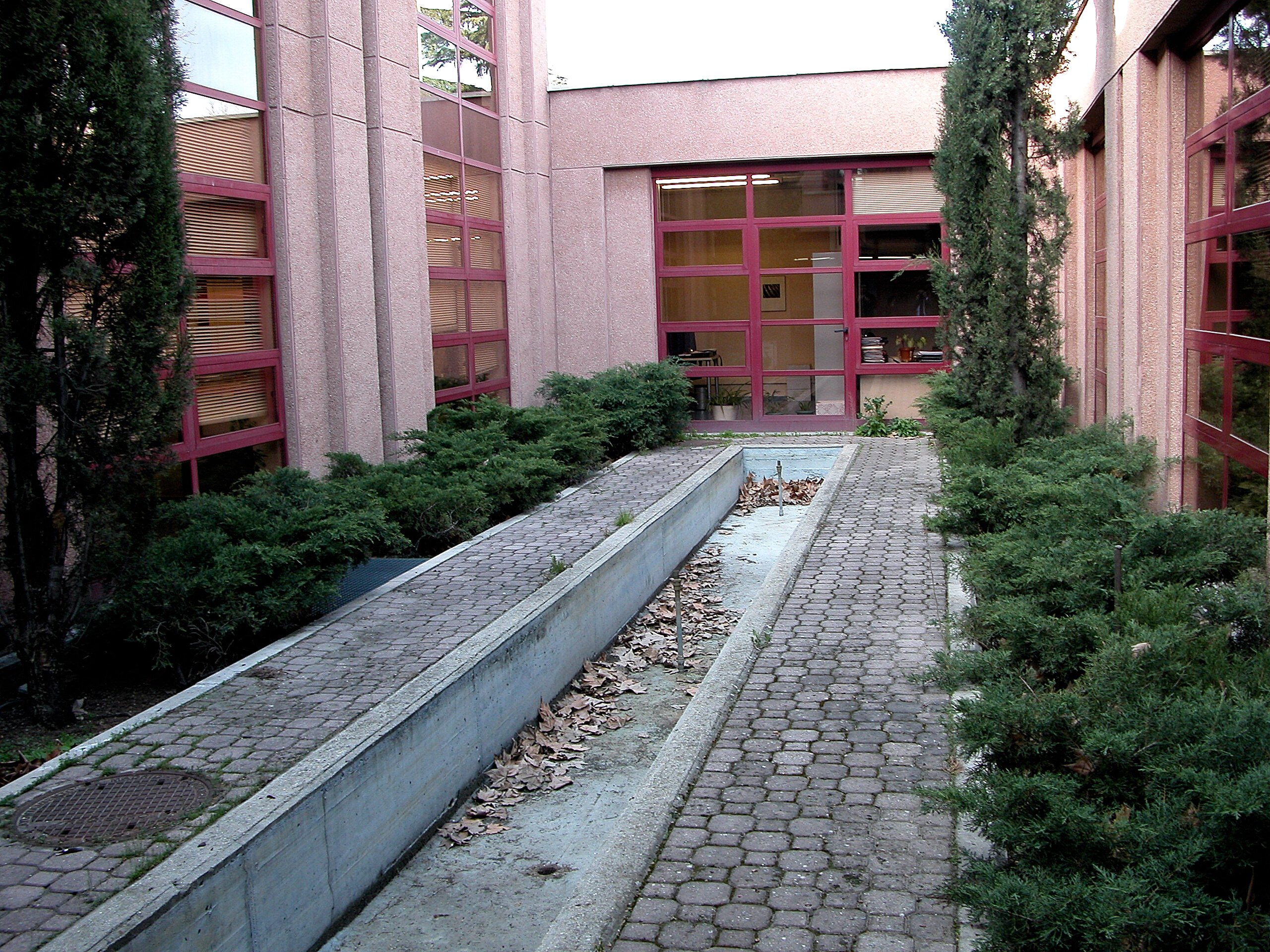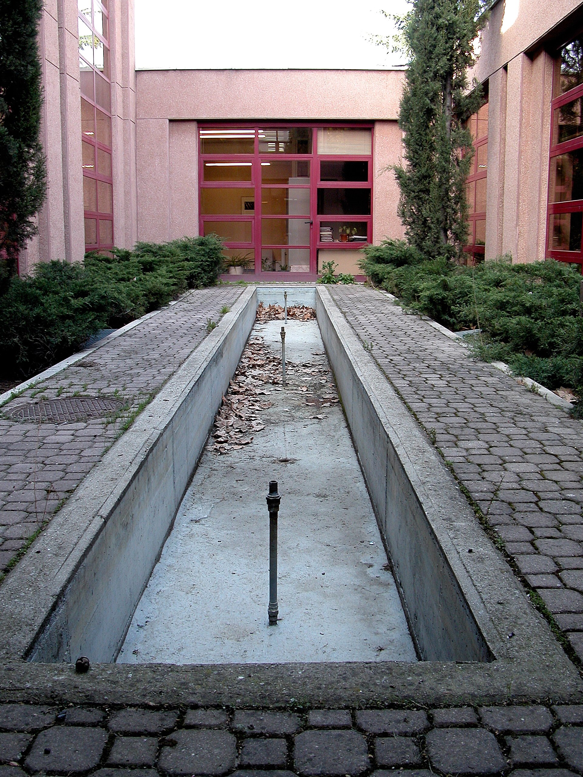 Elemento ornamental situado en el patio interior de uno de los nuevos pabellones de la Junta Municipal del Distrito de Hortaleza, construidos entre 1989 y 1991.