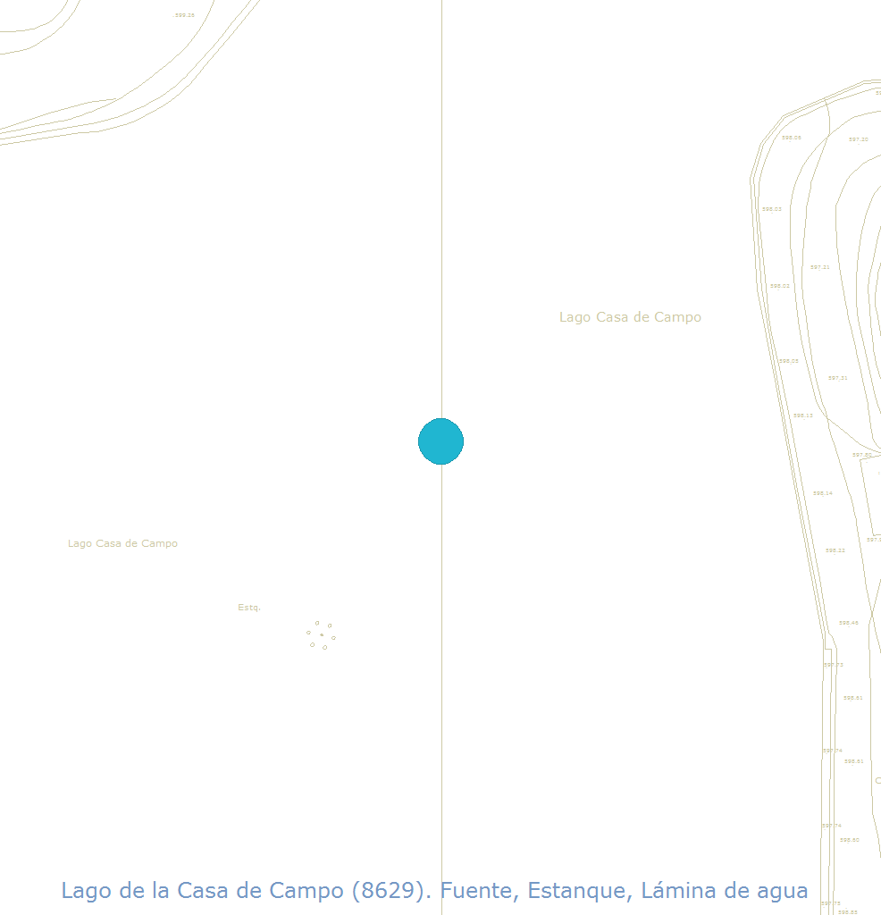 Es un inmenso lago de geometría ondulada y trazas orgánicas adaptadas a las peculiaridades morfológicas y topográficas del cauce y del entorno, provisto de un gran surtidor central. El largo recorrido perimetral conforma un itinerario que va recogiendo las diversas circunstancias que han incidido en el entorno del lago, destacando el embarcadero deportivo, que registra una larga tradición en la Casa de Campo, así como los diversos restaurantes y miradores. Un espectacular surtidor rompe, desde una mínima isleta central, la serenidad horizontal del lago, alcanzando alturas que se perciben desde muchos lugares del parque y a largas distancias, por lo que se ha convertido, en la lejanía, en el emblema y las señas de identidad del lago y de uno de los más bellos paisajes de la Casa de Campo. Aunque de escaso fondo, el lago permite la navegación de piraguas, pequeñas embarcaciones de recreo y deportivas, y en sus aguas flota una caseta de madera para control de especies acuáticas. El litoral de borde, muy variado según las condiciones físicas del territorio limítrofe, está poblado por una gran variedad de elementos dispersos: un ancla marina bajo la denominación Mar; fuentecillas perimetrales, balaustradas metálicas, paseos, gradas, miradores y bancos; desembocaduras de pequeños arroyos; muretes de contención de cemento o de piedra; especies vegetales como el excepcional plátano gordo cuya historia y excelencias están referidas en una adjunta lápida de madera.